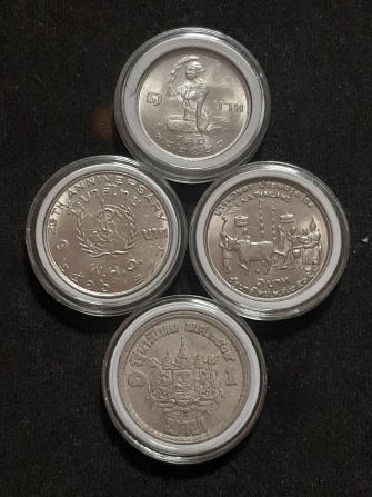 เหรียญกษาปณ์ 1 บาท ที่ระลึก รัชกาลที่ 9 จำนวน 4 เหรียญ หายาก สภาพสวยพร้อมตลับ (เคาะเดียว) |