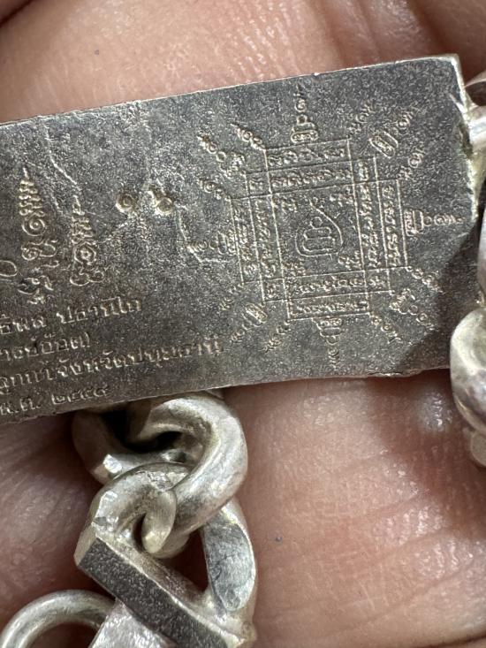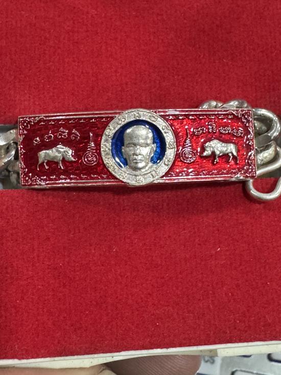 เลสข้อมือ พระอาจารย์อ๊อด รุ่นแรก ปี 2559 เนื้อเงินลงยาสีแดงน้ำหนัก 28 กรัม |