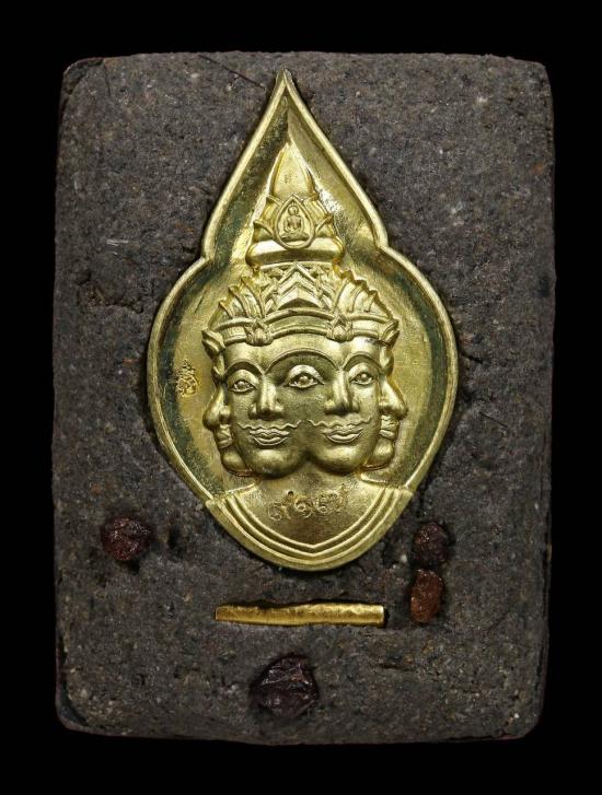 ล็อกเก็ตสี่เหลี่ยม "รุ่นแรก" (พิมพ์ใหญ่) พระอาจารย์ต้อม วัดท่าสะแบง (พรหมมหาลาภ) ด้านหลังฝังตะกรุดทองคำ พร้อมพลอยเสก+เส้นเกศาพระอาจารย์ +ฝังพรหม ทองเหลือง ตอกโค้ด ตอกหมายเลข 917