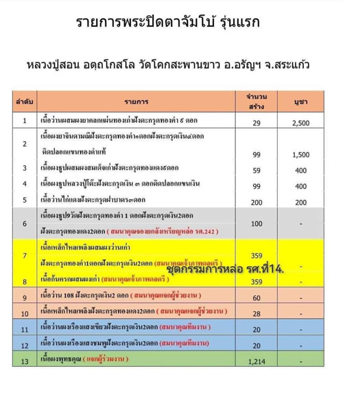 พระปิดตาจัมโบ้1 รุ่นแรก หลวงปู่สอน วัดโคกสะพานขาว อ.อรัญประเทศ จ.สระแก้ว เทพเจ้าแห่งการได้รับ เนื้อว่านผสมยาคลุกแผ่นทองเก่า ฝังตะกรุดทองคำแท้ๆ 9 ดอก(ท็อปสุด)องค์นี้พิเศษเกศาหลวงปู่เยอะมาก จำนวนสร้างน้อยเพียง 29 องค์เท่านั้น