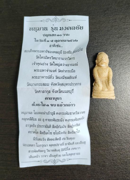 ชื่อพระเครื่อง หนุมานมงคลชัย ปลุกเสก 10 วาระ ปี 2562