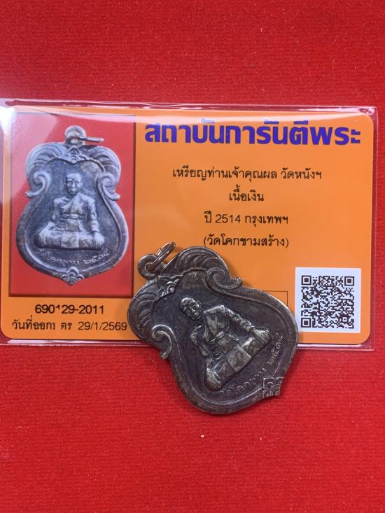 เหรียญท่านเจ้าคุณผล วัดหนัง ปี 14 เนื้อเงิน สภาพ สวย มาพร้อมบัตรรับรอง ครับ