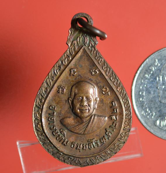 เหรียญหยดน้ำหลวงปู่ทวด วัดช้างให้ ปี 2522 พิมพ์หน้าแก่ เนื้อทองแดงรมน้ำตาล เคาะเดียวแดง
