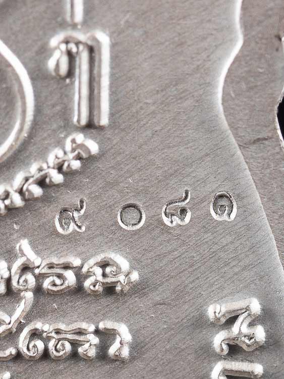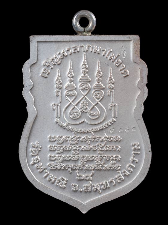 เหรียญเสมาหน้าแซยิดหูเชื่อมโบราณ หลวงพ่ออิฎฐ์ วัดจุฬามณี จ.ส มุทรสงคราม พ.ศ.2565 เนื้อเงินลงยา ตอกโค๊ต ตอกเลข กล่องเดิม