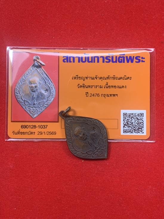 เหรียญท่านเจ้าคุณทักษิณคณิศร วัดอินทราราม ปี 2476 เนื้อทองแดง หายากครับมาพร้อมบัตรรับรองครับ