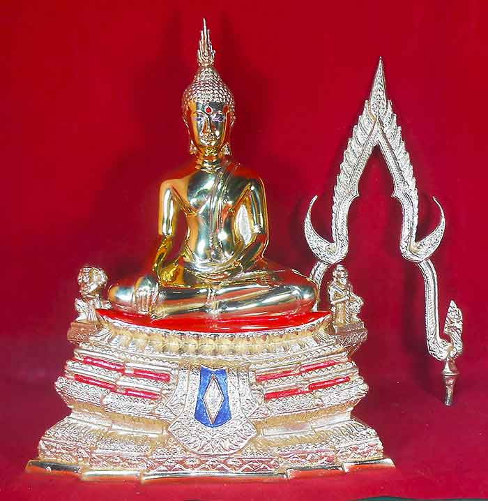 พระพุทธชินราช วัดพระศรีรัตนมหาธาตุ (วัดใหญ่) จ.พิษณุโลก ซุ้มถอดได้ ฐานหน้าอกเลา เนื้อทองเหลืองขัดมัน หน้าตัก 4.8 นิ้ว ขนาดความสูงรวมซุ้ม 12.3 นิ้ว