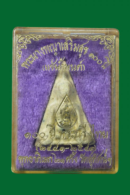 วัดใจ พระนางพญาเสริมสุข ที่ระลึก 100 ปี พระกริ่งไทย วัดสุทัศน์ฯ ปี 2541 เนื้อผง มวลสารดีมาก สภาพสวย กล่องเดิมๆ