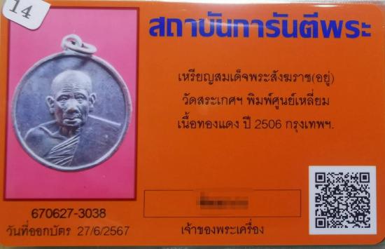 เหรียญสมเด็จพระสังฆราชอยู่..วักสระเกศฯพิมพ์ศูนย์เหลี่ยมนิยม..เนื้อทองแดง..ปี2506..จ.กรุงเทพฯ.. มาพร้อมบัตรรับรอง