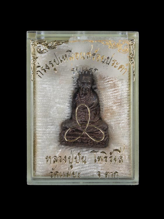 พระกริ่งรูปเหมือนสร้อยประคำ รุ่นแรก หลวงปู่ปัน โพธิรังสี วัด แม่ยะ จ.ตาก พ.ศ.2529 เนื้อนวะโลหะ สภาพสวย กล่องเดิม !!