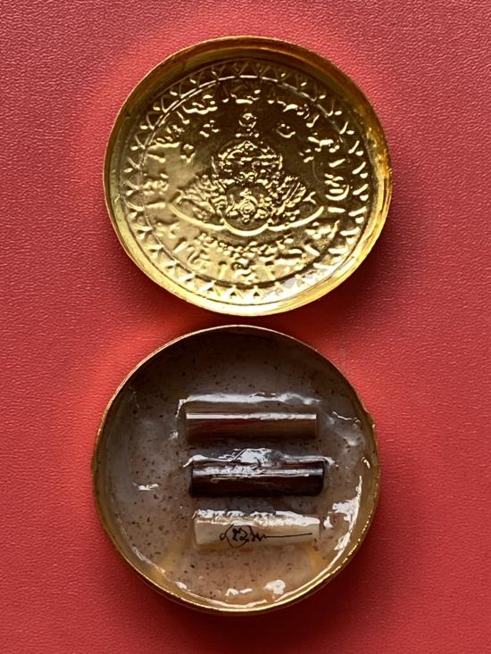 เนื้อ โลหะชุบทองลงยาสีดำขอบสีแดง ขนาด 5ซม |