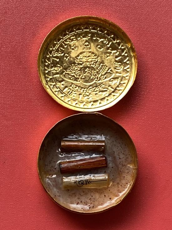 เนื้อ โลหะชุบทองลงยาสีดำขอบสีแดง ขนาด 5ซม |