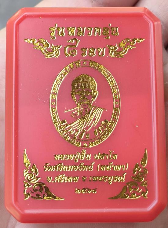 เหรียญหมวกอุ่น วาระ๘รอบ ๙๖พรรษา หลวงปู่ฝั้น ปสาโท วัดศรีถมอรัตนฺ์(วัดหน้าผา)เพชรบูรณ์ เนื้อนวะ คุ้ยพื้นลงยาเขียว ลงยาจีวร หลังยันต์มงกุฎ เลี่ยมกรอบชุบทองฝังพลอย หมายเลข ๗๗๗ พร้อมกล่อง เลขเจ้าสัว เลขแห่งความสำเร็จ ท่านเป็นศิษย์ก้นกุฏิ ลพ.เดิมวัดหนองโพ จ.นครสวรรค์