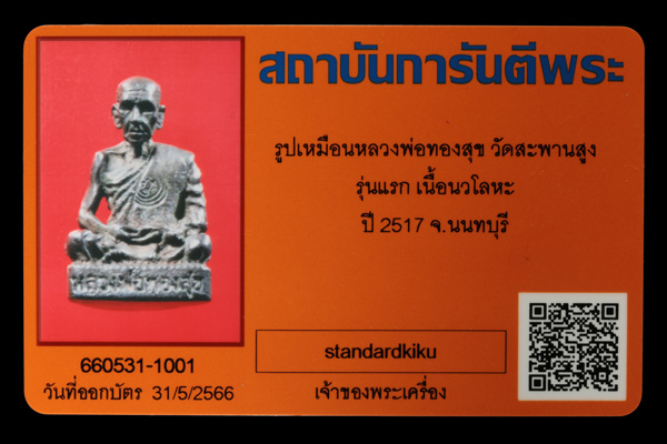 รูปเหมือนหลวงพ่อทองสุข วัดสะพานสูง รุ่นแรก เนื้อนวโลหะ ปี 2517 จ.นนทบุรี
