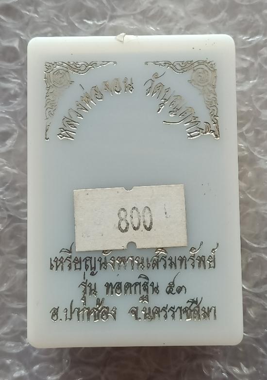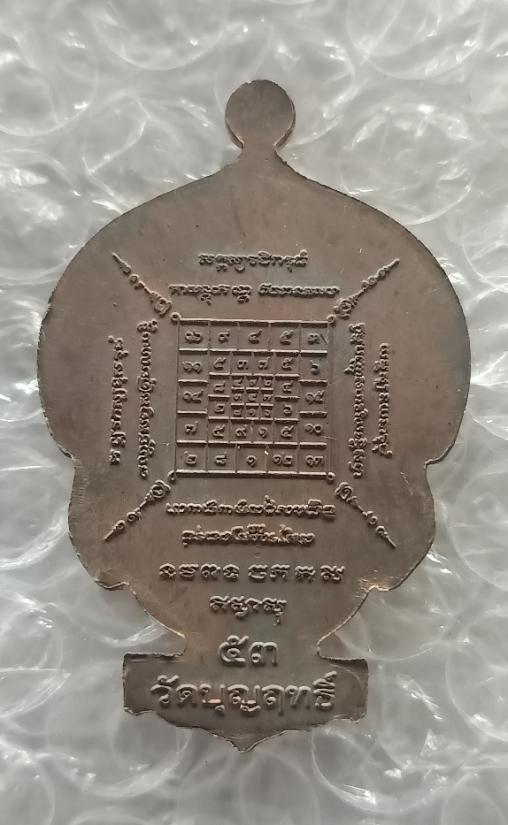 เหรียญนั่งพานเสริมทัพย์ หลวงพ่อจอน วัดบุญฤทธิ์ จ นครราชสีมา รุ่น ทอดกฐิน ๕๓ เนื้อนวะโลหะ หมายเลข ๔ |