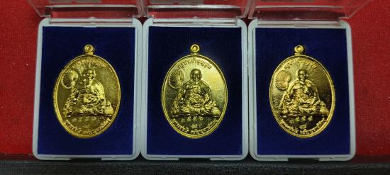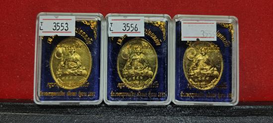 แบ่งปันเหรียญชนะจนปลอดภัย รุ่นรวยทันใจ ครูบาบุญชุ่ม ญาณสวโร วัดพระธาตุดอนเรือง เมืองพง รัฐฉาน ปี2561 เนื้อทองทิพย์กล่องเดิมๆ ชุด3องค์