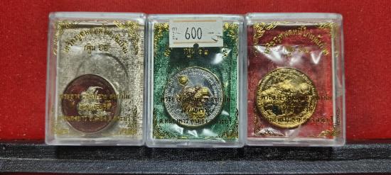 พระอาจารย์สมชาย สุขกาโม วัดหนองขริ้น จ.สระบุรี ชุดกรรมการ3เหรียญ อัลบาก้าลงยาแดง สามกษัติย์ ฝาบาตรกะหลั่ยทองฝังพลอย2เม็ด สี้าง199ชุด จองชุดละ599บาท ซีนเดิมๆยังไม่แกะลุ้นเลขสวยๆ แท้ทันประกันให้