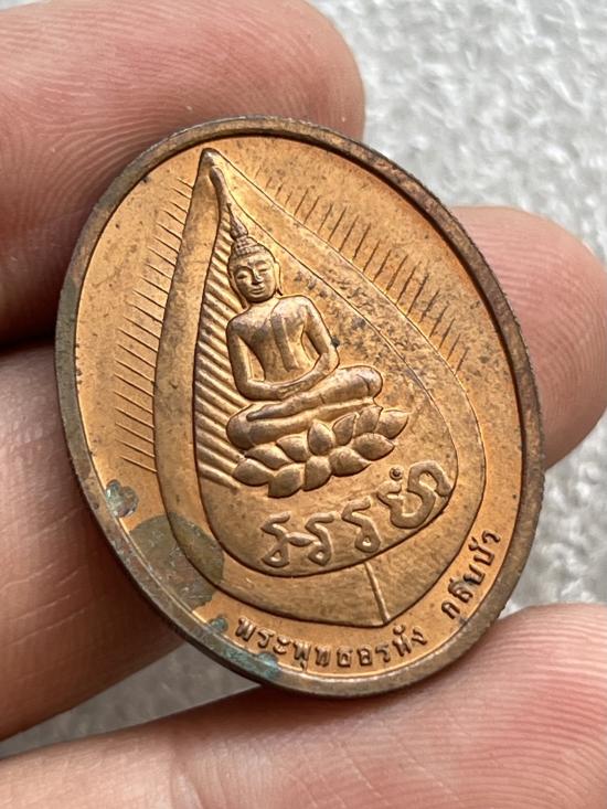 เหรียญพระพุทธอรหัง กลีบบัว หลวงปู่ไข่ วัดเชิงเลน บล๊อกกองกษา ปณ์ ปี 2545 ผิวไฟเดิม