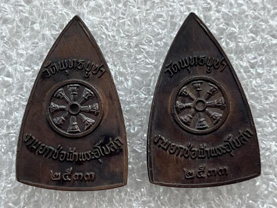 เหรียญพระพุทธชินราชหลังธรรมจักรวัดพุทธบูชา งานยกช่อฟ้าพระอุโบสถ บางมด ปี 2533 สวยเดิม2เหรียญ