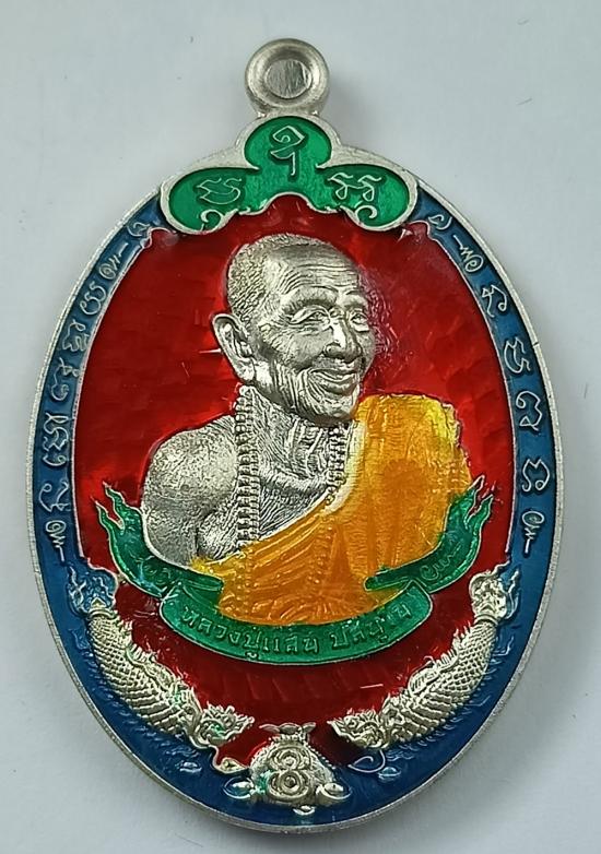 เหรียญไข่หันข้าง "8แสนล้าน" หลวงปู่แสน บ้านหนองจิก ปี61 เนื้อเงินลงยาราชาวดี พื้นแดง ลงยาเขียว/น้ำเงินจีวรเหลือง/โบว์เขียว เบอร์ 73 พร้อมกล่องเดิมครับ (เหรียญหนัก17.40 กรัม)