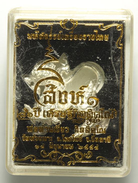 สิงห์ 1 เนื้อ เงินแท้ รุ่น 86 ปี เศรษฐีกิตติคุโณ พ่อท่าน เขียว วัดห้วยเงาะ สร้างน้อย 299 องค์ หมดตั้งแต่้ปิดจอง หมายเลข 65 นน.ประมาณ 20.75 กรัม กล่องเดิมๆ ครับ