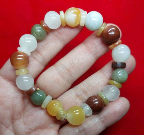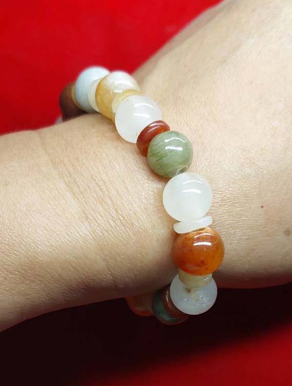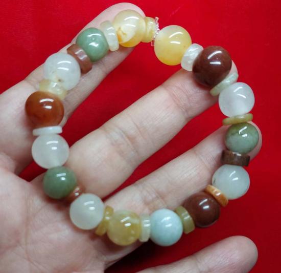***วัดใจ***สร้อยข้อมือ หยกพม่าแท้ 5 สี หยกธรรมชาติ