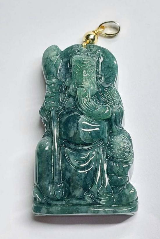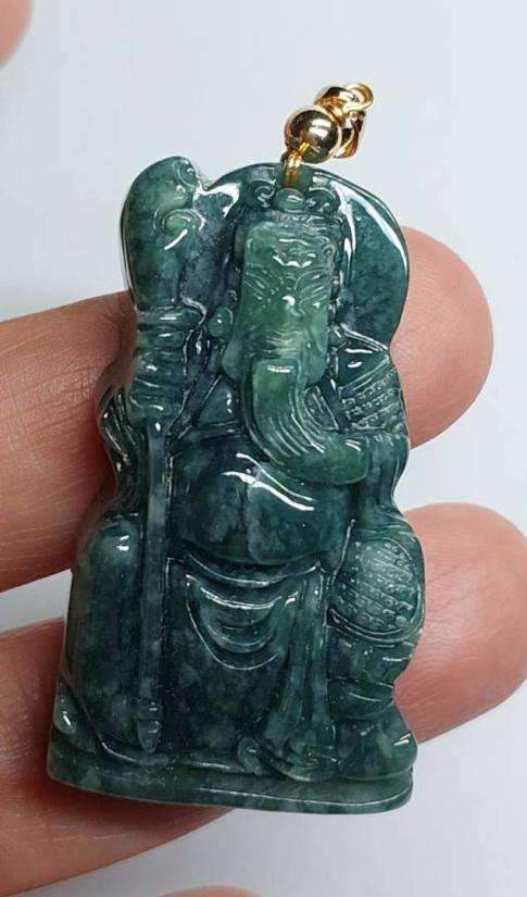 จี้หยกเทพเจ้ากวนอู หยกพม่า เนื้อโอเชียนบลู ขนาดสูง 2 นิ้ว |