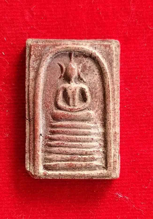พระสมเด็จหลวงพ่อกวย วัดโฆสิตาราม จังหวัดชัยนาท พิมพ์วัดเกศไชโย ๗ ชั้น เนื้อผงน้ำมัน มีรอยบิ่นมุมซ้าย