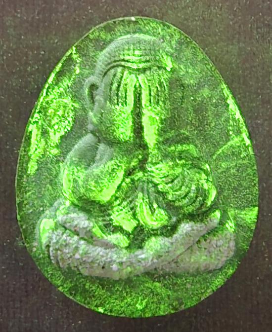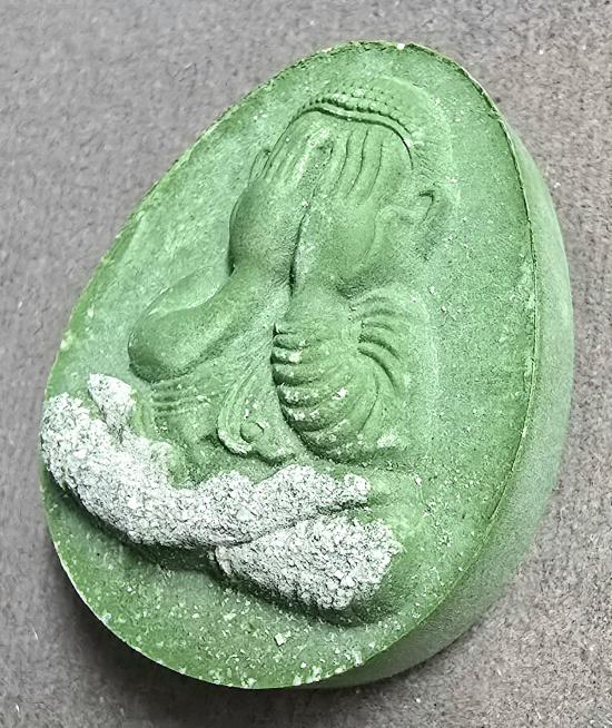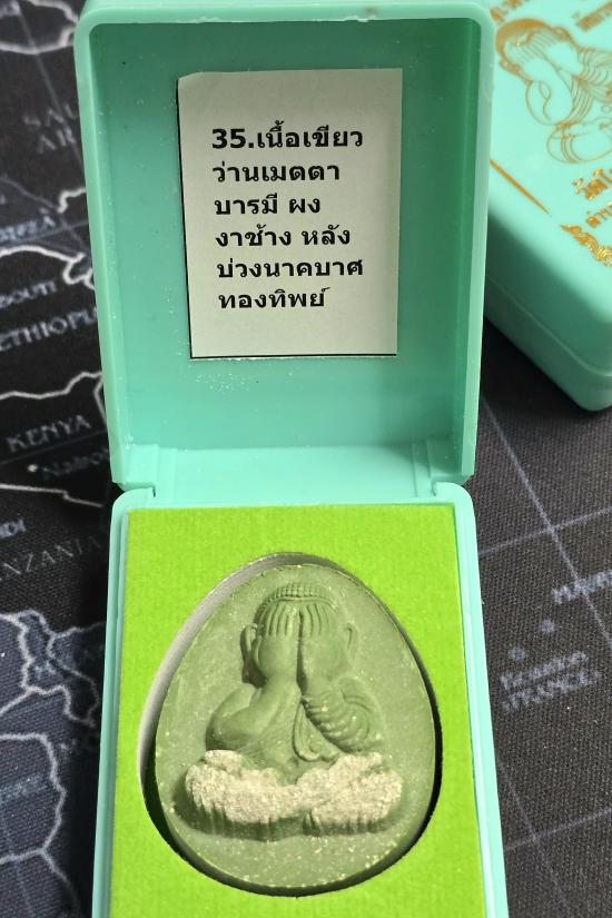 เนื้อเขียวว่าน เมตตาบารมี โรยผงงาช้าง หลังติดบ่างนาคบาศเนื้อทองทิพย์ เรืองแสง