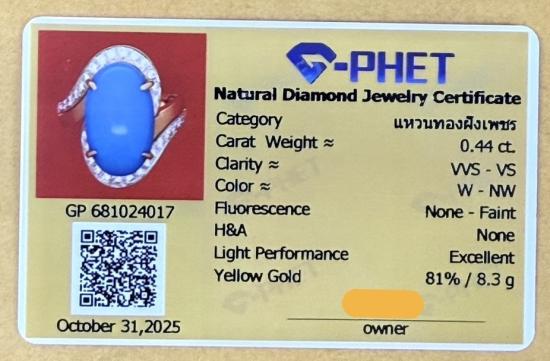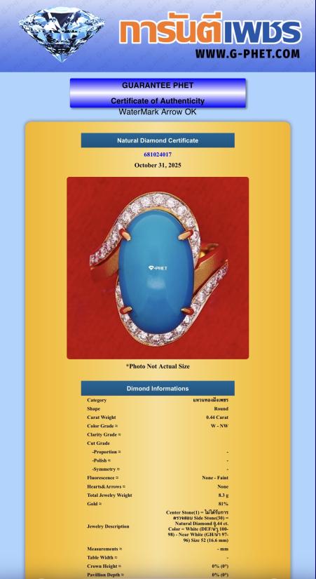 ข้อมูลรายละเอียดตามใบเซอร์จากการันตีเพชร