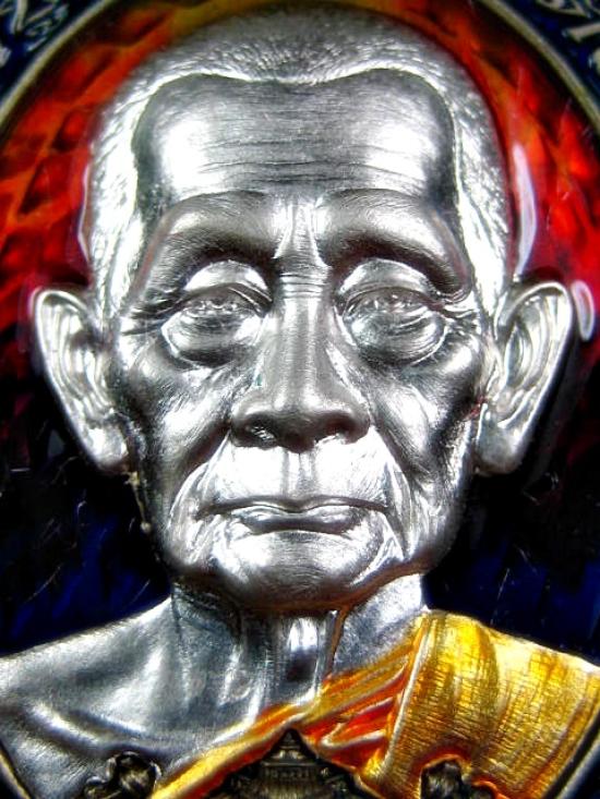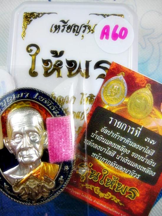 เหรียญ รุ่นให้พร เนื้ออัลปาก้าลงยาไล่สีน้ำเงินแดงเหลือง ขอบน้ำเงิน หลังลงยาไล่สี นำเงินเหลือง หน้ากากเงิน ลงยาจีวร (---A60---) |