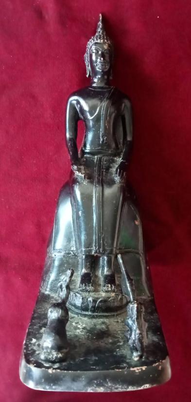 พระบูชา ปางปาลิไลยก์ ขนาดฐานเหลี่ยมประมาณ 9 นิ้ว 1 หุน X 4 นิ้ว 3 หุน ประทับนั่งบนบังลังก์ เนื้อทองเหลืองเก่า ทาสีดำทับ สภาพสวยตามรูป ส่งฟรีทั่วไทย รับประกันตามกฎครับ