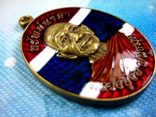 เหรียญรุ่นทรัพย์นาคา เนื้อทองทิพย์ ลงยาสีธงชาติ หลวงปู่จื่อ วัดเขาตาเงาะ จ.ชัยภูมิ (---A61---) |