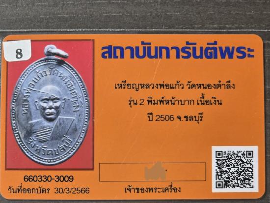 เหรียญหลวงพ่อแก้ว วัดหนองตำลึง เนื้อเงิน สวยกิ๊บ พร้อมบัตรรับรอง