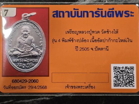 เหรียญหลวงปู่ทวด รุ่น4 ช้างปล้องกาหลั่ยเงิน พร้อมบัตรับรอง