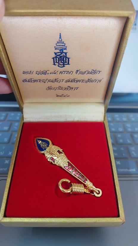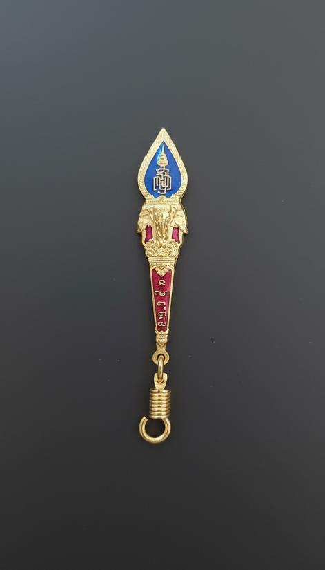แหนบ ญสส 84พรรษา ช้างสามเศียร ชุบทองลงยา (น้ำเงินแดง) ปี 2540 วัดบวรนิเวศ