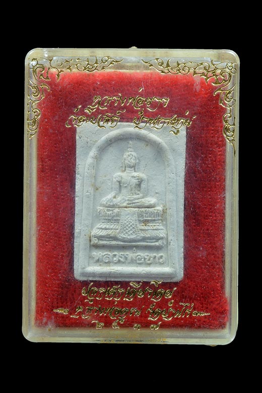 พระผงหลวงพ่อขาว วัดโบสถ์ บ้านกระทุ่ม สร้างหอสวดมนต์ จ.พระนครศรีอยุธยา ปลุกเสกเดี่ยวโดย หลวงพ่อคูณ พ.ศ.2537 ( กล่องเดิม )