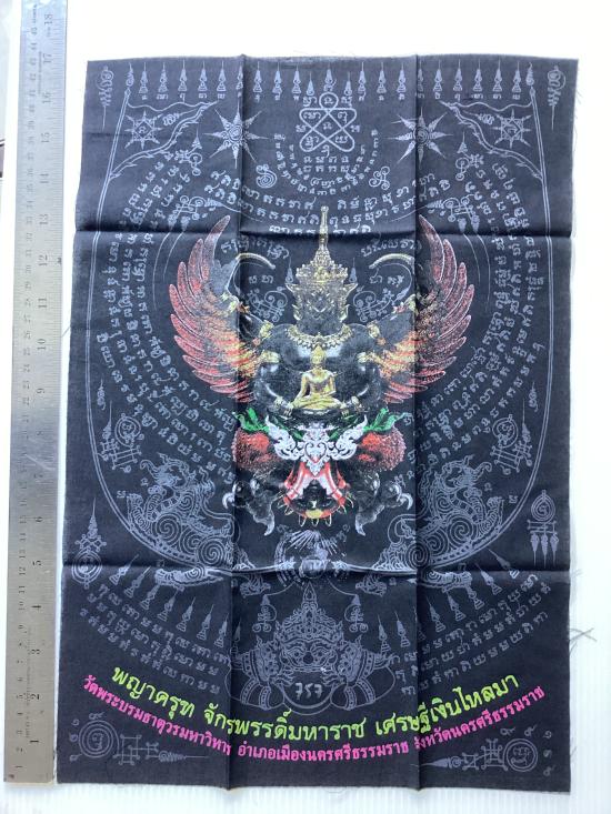 ผ้ายันต์ พญาครุฑ รุ่น เศรษฐีเงินไหลมา วัดพระศรีมหาธาตุวรมหาวิหาร จ.นครศรีธรรมราช สีดำ ขนาด A3 ขนาด 11.5 นิ้ว x 16.5 นิ้ว |