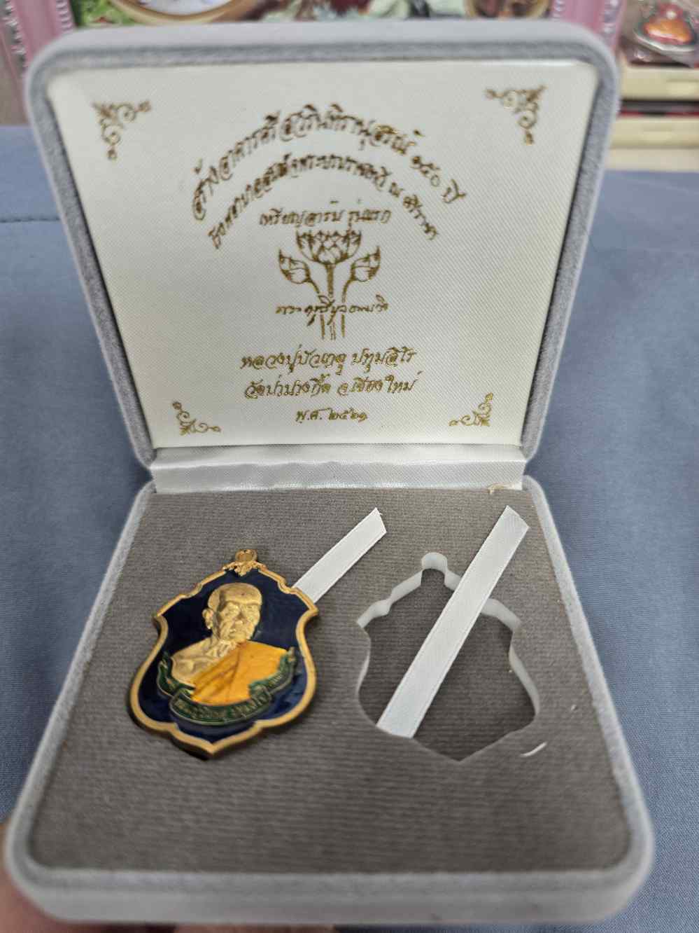 เหรียญอาร์ม รุ่นแรก หลวงปู่บัวเกตุ เนื้อสัตตลงยาน้ำเงิน เลข 1400 พร้อมกล่องเดิมๆ |