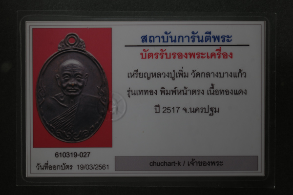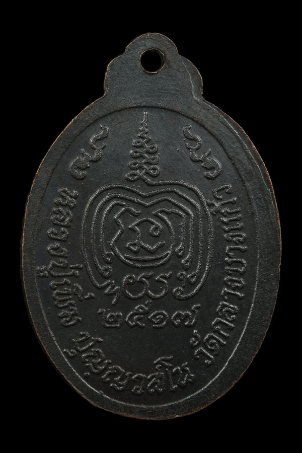 เหรียญหลวงปู่เพิ่ม วัดกลางบางแก้ว จ.นครปฐม รุ่นเททอง พิมพ์หน้าตรง ปี 2517 เนื้อทองแดงรมดำ