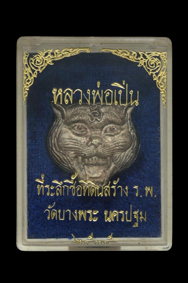 เหรียญหน้าเสือ รุ่นใหญ่ หลวงพ่อเปิ่น วัดบางพระ จ นครปฐม เนื้อเงิน ปี2535 กล่องเดิม