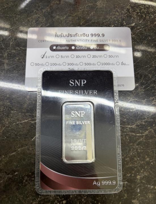 เงินแท่ง 1 บาท Fine Silver 999.9% แสงนภาโกลล์ SNP ยอดนิยม พร้อมใบรับประกันตรงจากร้าน 1/2/2569