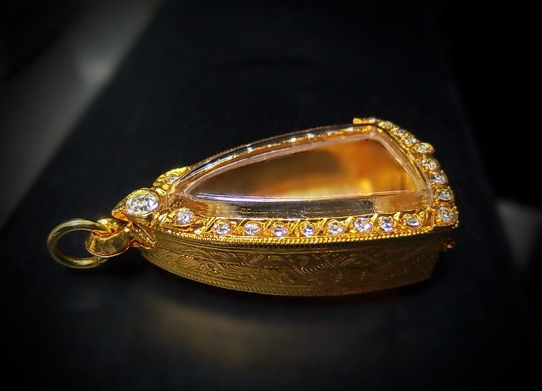 ตลับเงินชุบทองใส่พระกริ่งเพชรล้อม |
