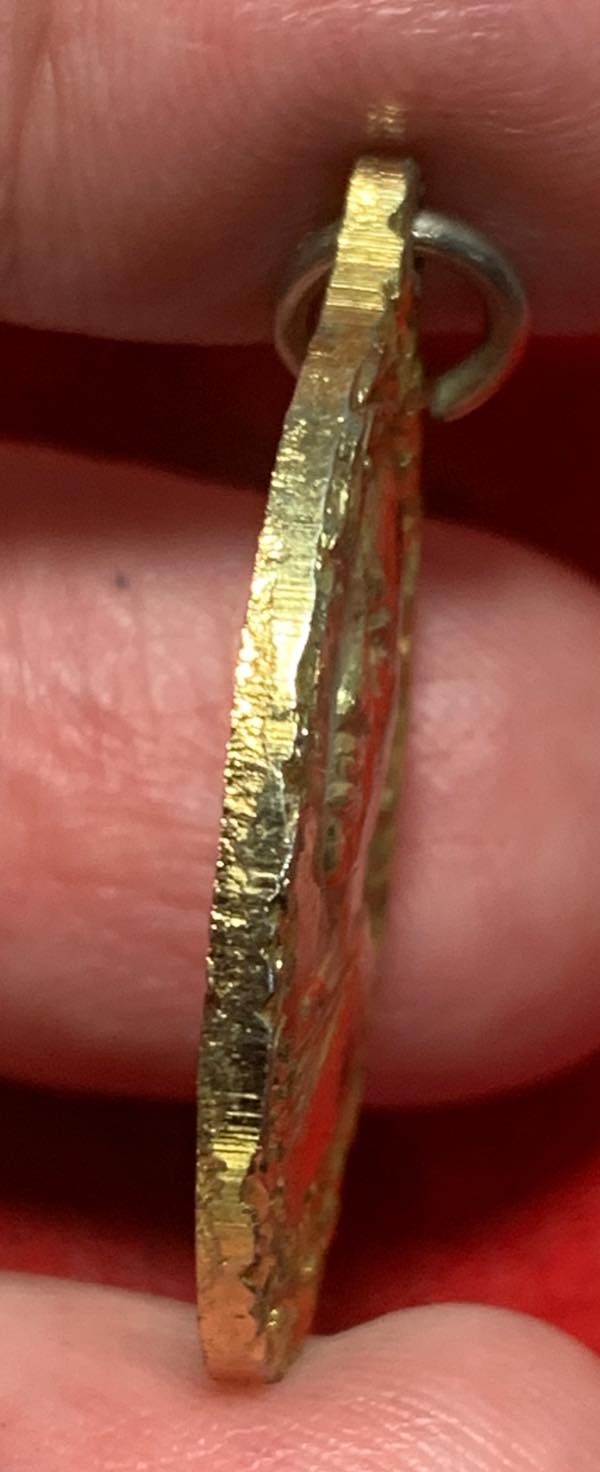 เนื้อเหรียญ: เหรียญในภาพเป็นเนื้อกะไหล่ทอง