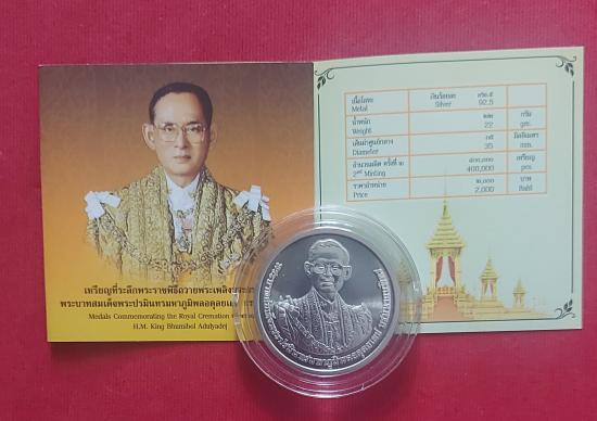 เหรียญที่ระลึกพระราชพิธีถวายพระราชทานพระบรมศพรัชกาลที่๙เนื้อเงินสภาพสวยเดิมไม่ผ่านการใช้พร้อมกล่องเดิมครับ