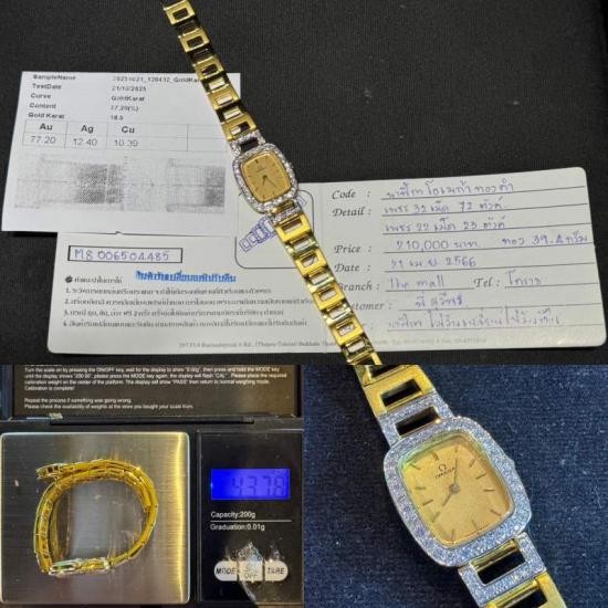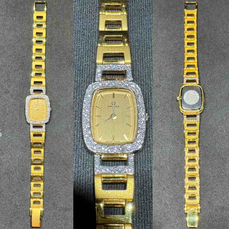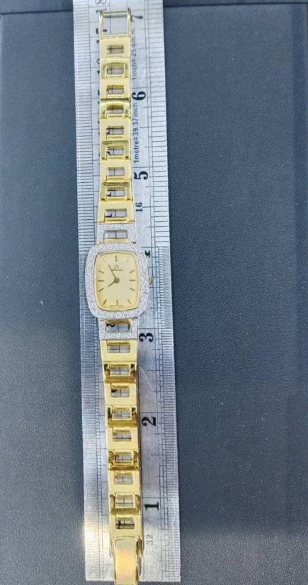 นาฬิกา Omega กรอบทองคำฝังเพชรแท้(นน เพชร 0.95ct) และสายทองคำ(77.20% นน ทอง 39.4g) นน รวม 43.78g ความยาว 7 นิ้ว.
