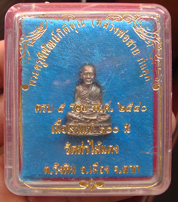 รูปหล่อ เนื้อเงิน ครบ 5 รอบ หลวงพ่อสาย วัดท่าไม้แดง จ.ตาก ปี2540 ตอกโค๊ต ก้นมีจาร กล่องเดิมสวยครับ