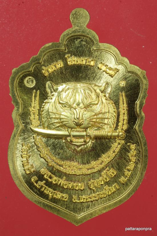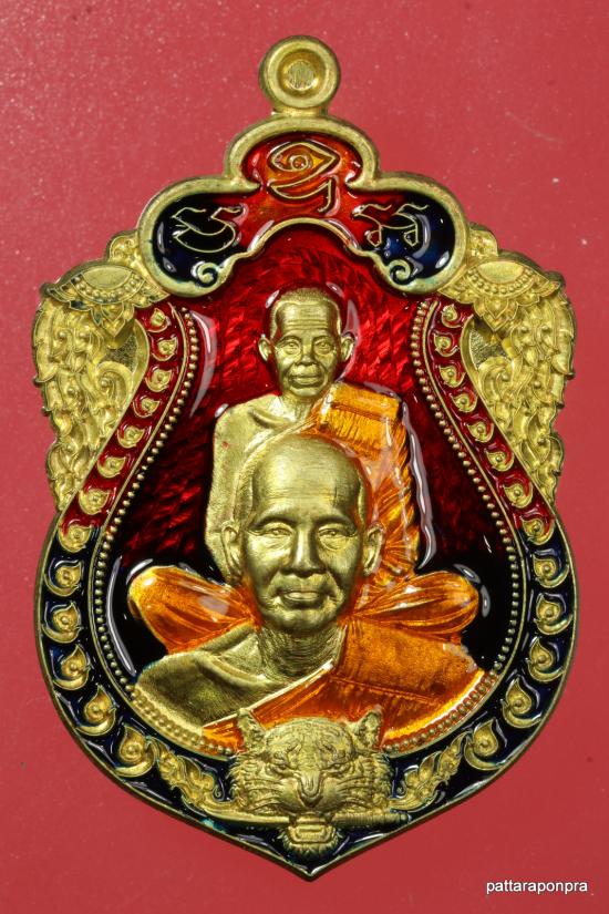 เหรียญเสมาหลวงพ่อทอง เสือคาบดาบ รุ่น3 ปี 2564 เนื้อทองฝาบาตรลงยา หมายเลข 3