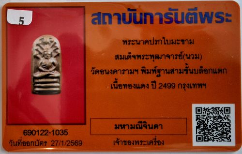 พระนาคปรกใบมะขาม สมเด็จพระพุฒาจารย์(นวม) วัดอนงคารามฯ ปี 2499 พิมพ์ฐานสามชั้น บล็อกแตก (นิยม) เนื้อทองแดง หายาก พร้อมบัตรรับรองครับ