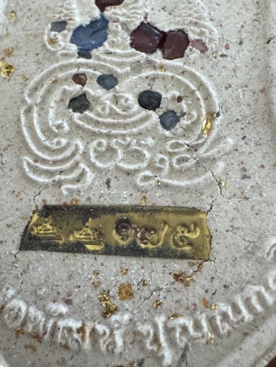 พระผงจำปีใหญ รุ่นเลื่อนสมณศักดิ์ 100 ปี หลวงพ่อพัฒน์ วัดห้วยด้วน นครสวรรค์ กระบองทองคำแท้ ฝังพลอยด้านหลัง หมายเลข 175 |