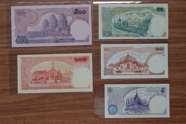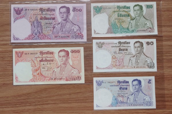 ชุดธนบัตรหมุนเวียน ในยุครัชกาลที่9 แบบที่ 11 สภาพ UNC ไม่ผ่านการใช้งาน ครบชุด5ใบ 5ชนิดราคา